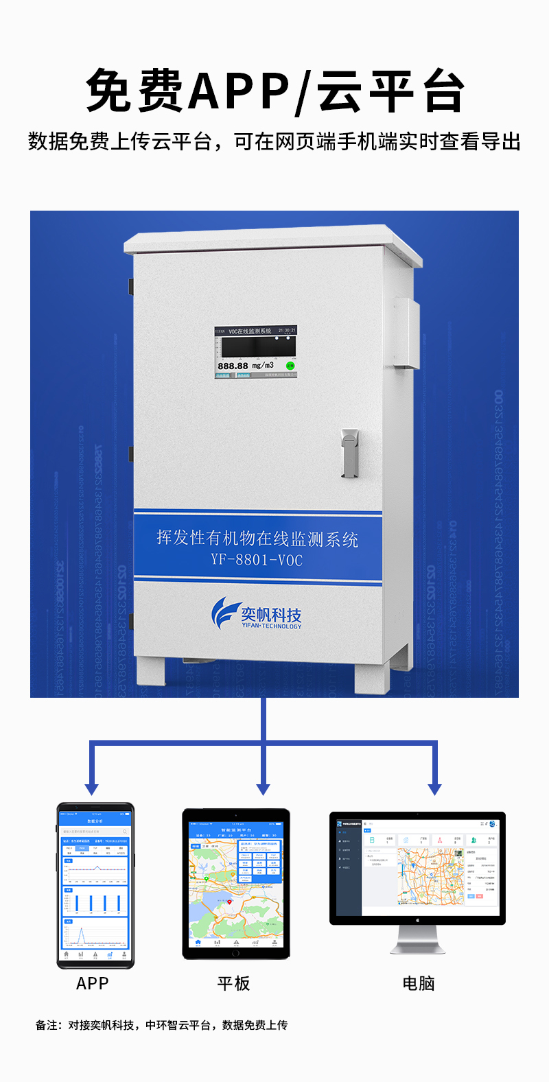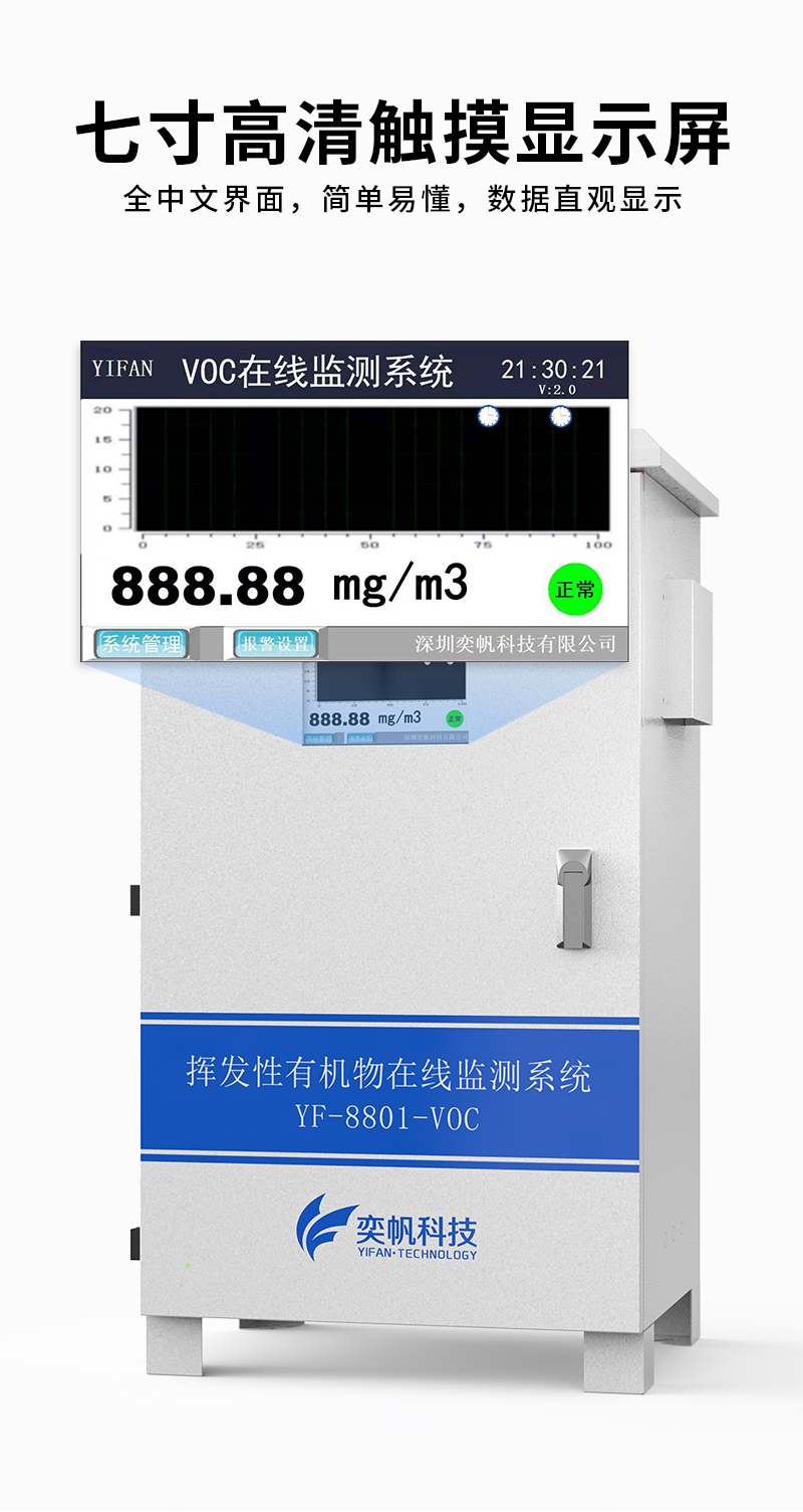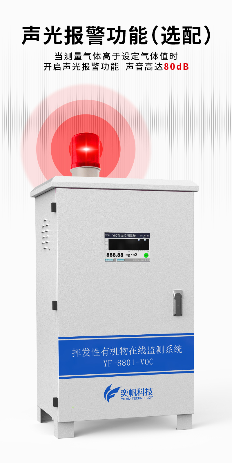 YF-8801-VOC奕帆科技TVOC在線監測系統,適用于連續監測無組織環境空氣中的非甲烷總烴、苯、甲苯、二甲苯等揮發性有機物氣體。產品選用進口原裝(baseline)高精度PID光離子傳感器,采用泵吸式采樣監測,內置多重預處系統,包括除塵冷卻除水過濾等,可以很好的保護傳感器不受侵害,保證監測數據的準確穩定。可在app和云平臺查看實時數據、歷史數據、導出數據等同時具備24小時連續監測、超標報警、數據存儲功能。產品已獲得CCEP中國環境環保協會認證、CMA檢測報告:軟件著作權登記證書。